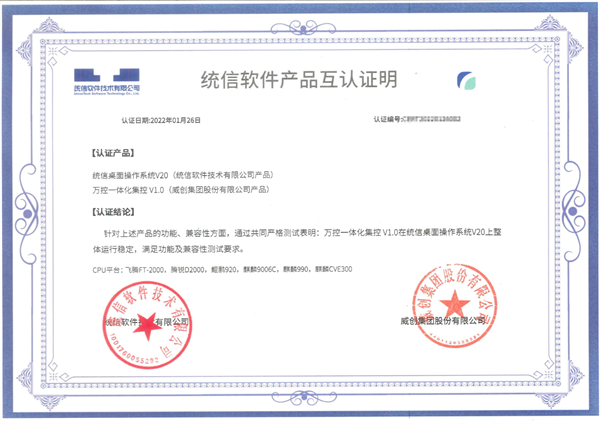 1月26日,威创集团股份有限公司、统信软件技术公司(简称“统信软件”)就万控一体化集控软件与统信服务器操作系统V20的兼容性、功能性完成了互认证测试。经检测,双方兼容性良好,各项指标正常、运行稳定,适用于控制室的国产化、数字化转型应用。