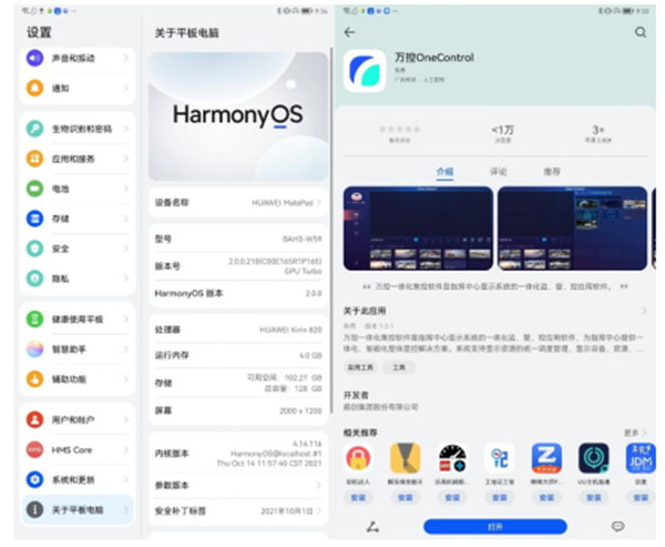 同时,万控一体化集控软件和华为HarmonyOS系统也进行了兼容测试,经过细致严谨的验证,万控一体化集控软件能直接且稳定地运行在鸿蒙系统2.0,软件在华为鸿蒙应用商店顺利正式上架。